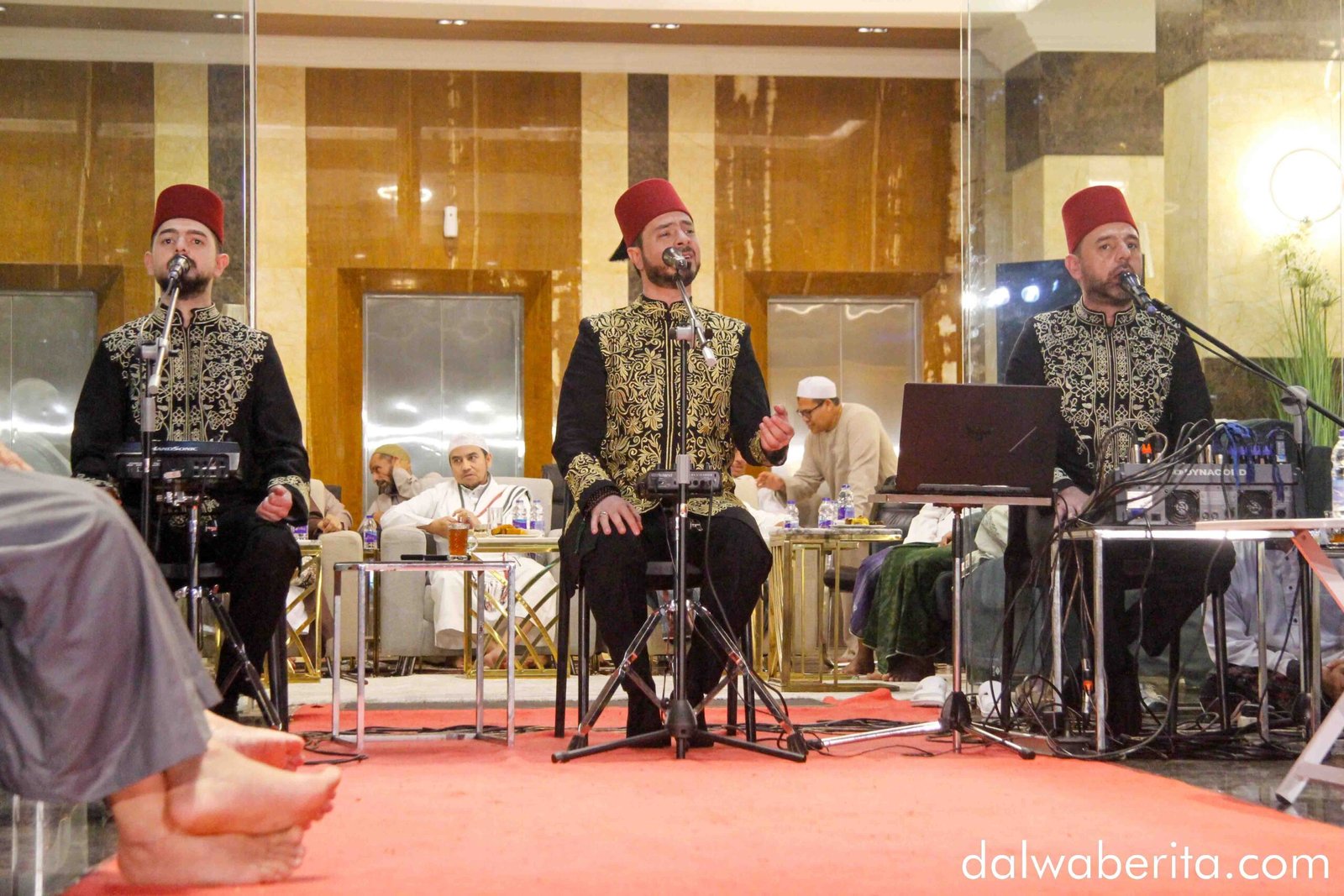 Sebelum melanjutkan shalawat, Syekh Yasin mengisyaratkan bahwa mereka akan membawakan qasidah favorit para santri Dalwa.