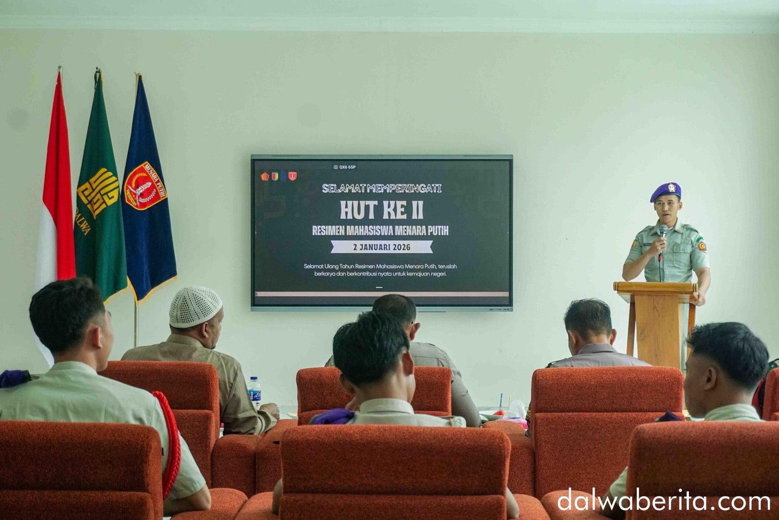 Pada Jumat (02/01/2026) Satuan Resimen Mahasiswa UII Dalwa peringati HUT Ke-II, yang berlangsung di Mabna Abuya Hasan.