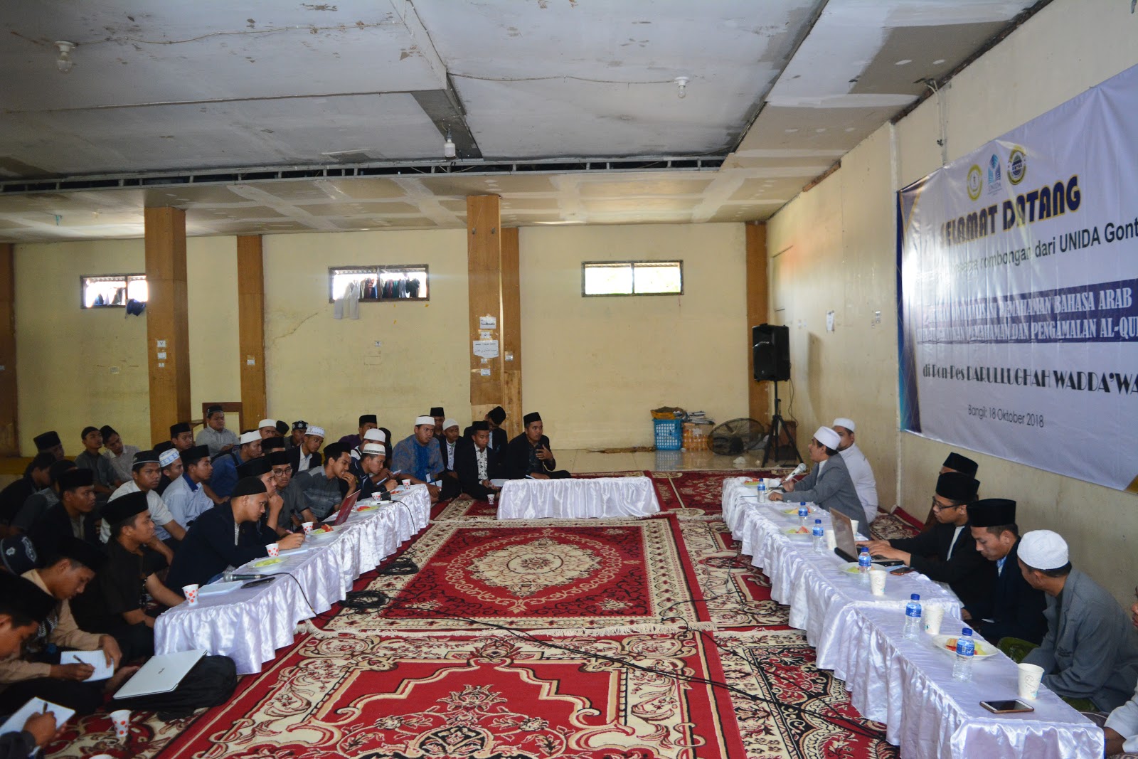 Pasuruan- Pada Kamis 18 Oktober 2018 IAI Darullughah Wadda’wah Bangil menerima tamu sejumlah 50 mahasiswa dari Fakultas Ushuluddin Universitas Darussalam (Unida) Gontor Ponorogo.