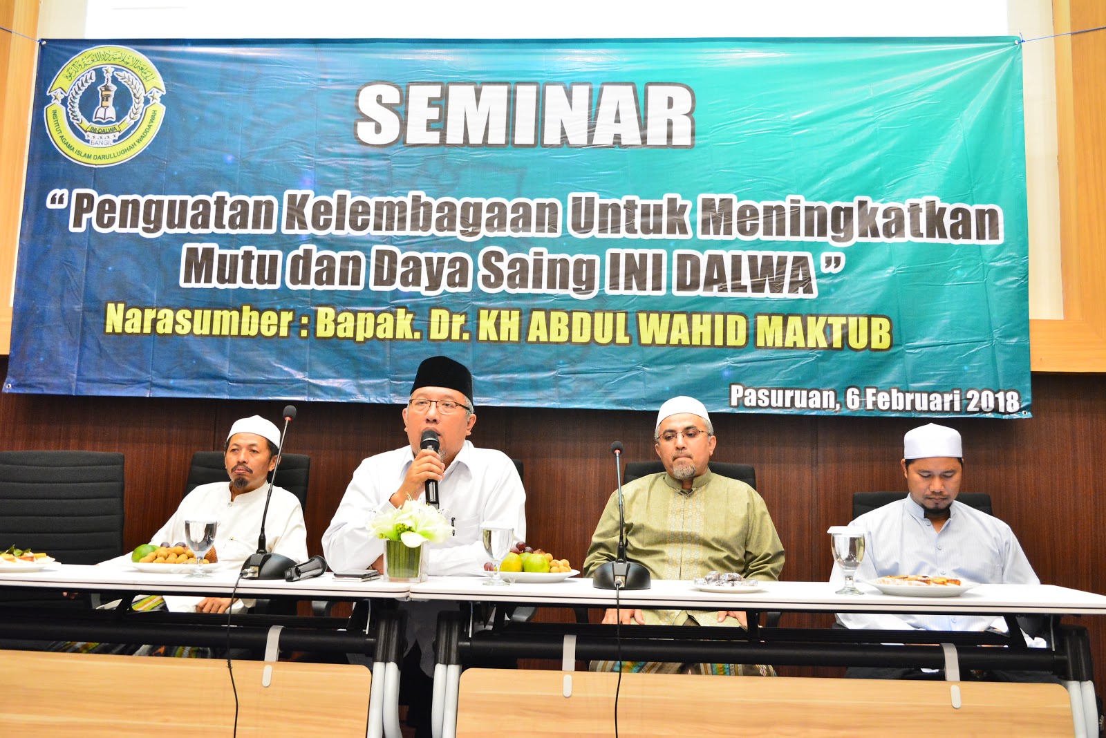 Beliau memenuhi undangan dari Institut Agama Islam Darullughah Wadda’wah untuk mengisi acara seminar denga tagline “Penguatan Kelembagaan untuk Meningkatkan Mutu Daya Saing IAI DALWA”.
