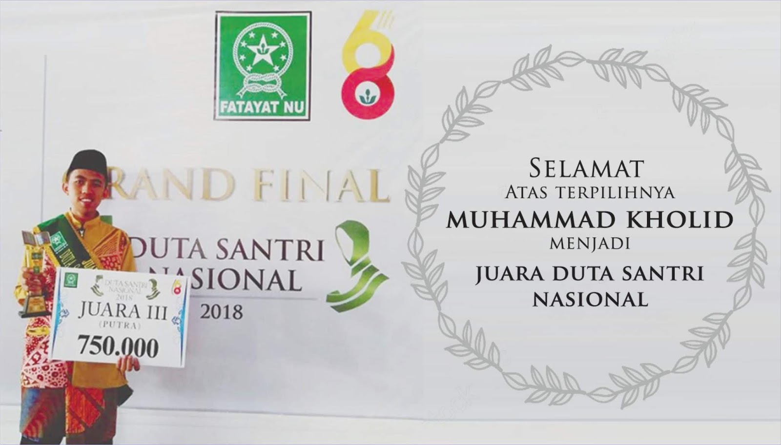 Kiranya slogan tersebut tepat disematkan pada Muhammad Kholid. Santri asal Kalimantan Barat yang lahir di Sendoyan 29 September 1996 yang saat ini duduk di kelas 2 Aliyah Dinniyah, dan untuk jenjang perkuliahan ia sedang menempuh semester VII di program studi Sejarah Kebudayaan Islam.
