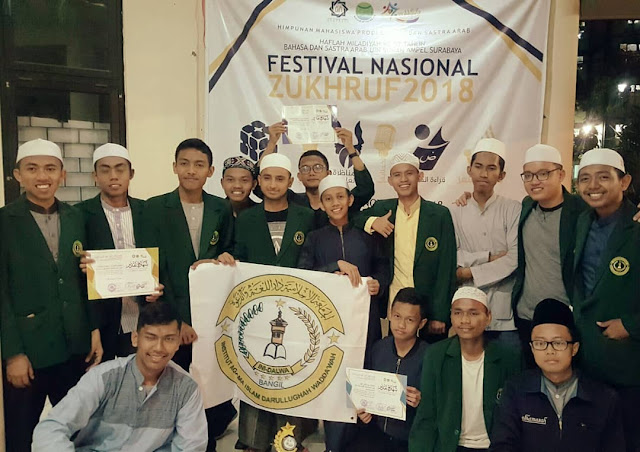 Surabaya-Selasa 22 Oktober 2018 – IAI Dalwa mengirim delapan belas utusannya untuk mengikuti suatu event perlombaan yang sudah tidak asing lagi, ‘Festival Zukhruf’ 2018. Event ini merupakan salah satu event besar yang ditunggu-tunggu oleh IAI Dalwa. Sebab event ini dilaksanakan oleh salah satu Universitas yang memilki hubungan cukup baik dengan IAI Dalwa yaitu UIN Sunan Ampel Surabaya. Dan juga karena tingkat perlombaannya yang mencapai Tingkat Nasional.